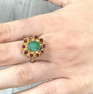 Pierres semi précieuses : Emeraude, Grenat.